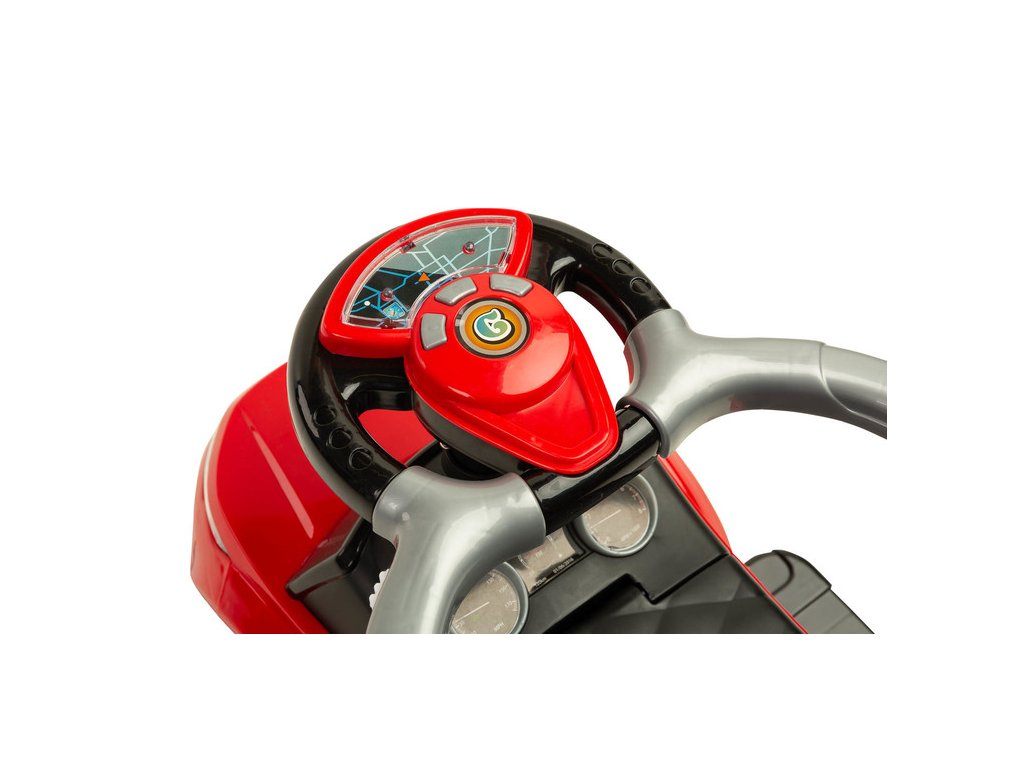 A jármű sportos dizájnja első pillantásra lenyűgöz. A versenyautóra emlékeztető vonzó forma mind a fiúkat, mind a lányokat megszólítja. A minőségi tartós műanyag hosszú élettartamot és egyszerű karbantartást biztosít – elég egy nedves ruhával áttörölni.