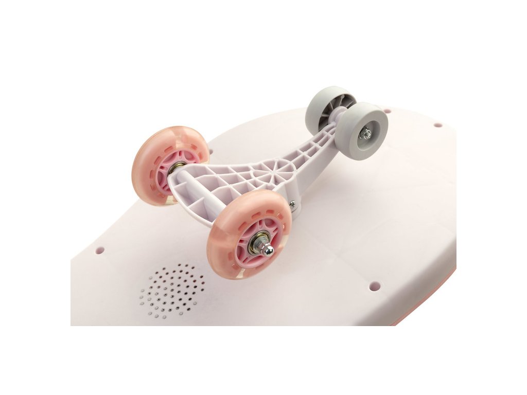 Elég megnyomni a kormányon lévő megfelelő gombokat, és a gyermek elindít egy elbűvölő színes fények villanását és négy rövid dallamot (12–30 másodperc hosszúságban). De ez még nem minden! Amikor gyermeke eléri a megfelelő sebességet, kigyulladnak a kerekeken lévő világító gumikörök is, ami lenyűgöző vizuális effektust hoz létre és motivál a további mozgásra.
