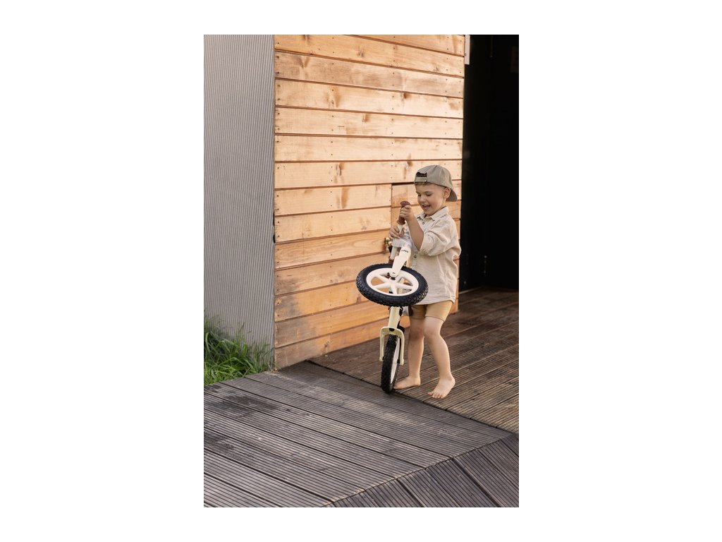 A futóbicikli kellemes esztétikájával tűnik ki, finom pasztell színekkel, amelyek egyedi bájt kölcsönöznek neki. A meleg barna árnyalatú részletek fokozzák eleganciáját és klasszikus hangulatot adnak. Ez az időtlen design problémamentesen megfelel mind fiúk, mind lányok számára, és garantáltan lenyűgözi az összes kis kerékpárost.