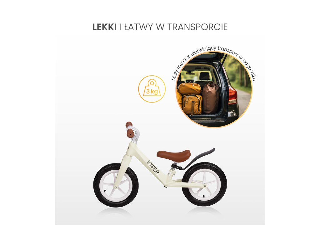 A szülők számára az alacsony súly egyszerű szállítást jelent – a futóbicikli problémamentesen elfér az autó csomagtartójában, így ideális családi kirándulásokra városon kívül és mindennapi sétákra egyaránt.