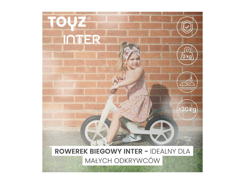 A TOYZ INTER egyensúlyozó futóbicikli kiváló választás 3-6 éves gyerekek számára, akik megkezdik kerékpáros kalandjaikat. Ez a gondosan megtervezett termék egyesíti a biztonságot, kényelmet és elegáns dizájnt, így minden gyermek kedvenc társává válik a világ felfedezése során két keréken.
