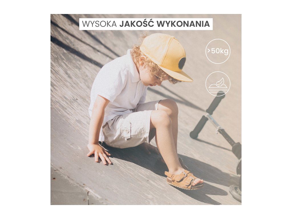 A roller kiváló minőségű anyagokból készült, amelyek garantálják a hosszú távú tartósságot és biztonságot használat közben. A könnyű alumínium és karbon kombinációja biztosítja a konstrukció szilárdságát az alacsony súly megtartása mellett. Az 50 kg-os maximális terhelhetőséggel a roller ideális kisebb és valamivel idősebb gyerekek számára is, így valóban hosszú távú befektetés.