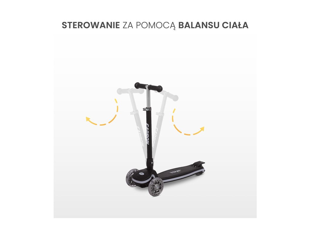 A CARBON roller testsúly-áthelyezéses kormányzási rendszert használ, amely ideális a fiatal vezetők számára. Ez a természetes és intuitív kormányzási mód segít fejleszteni a gyermek koordinációját és motoros készségeit. A rollerezés így nemcsak szórakozás, hanem edzés formája is, amely: