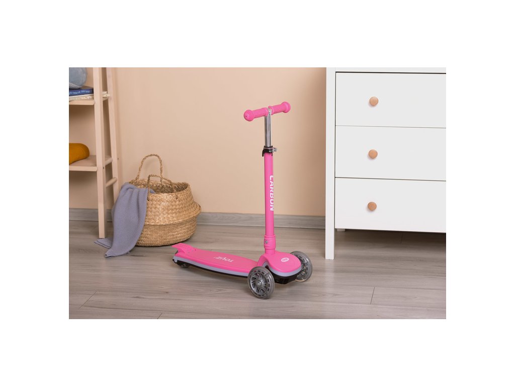 A TOYZ CARBON roller tökéletes társa azoknak a gyerekeknek, akik szeretik a mozgást, a kalandot és a szórakozást. Ezt a gyerek karbon rollert kifejezetten a 3 éves kortól kezdődő kis felfedezők számára tervezték, akik teljes mértékben élvezni szeretnék minden menetüket. Az élénk, ragyogó színeknek köszönhetően nemcsak örömet szerez, hanem jelentősen növeli a gyermek láthatóságát is menet közben, ami kulcsfontosságú a biztonság szempontjából.
