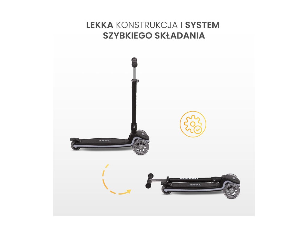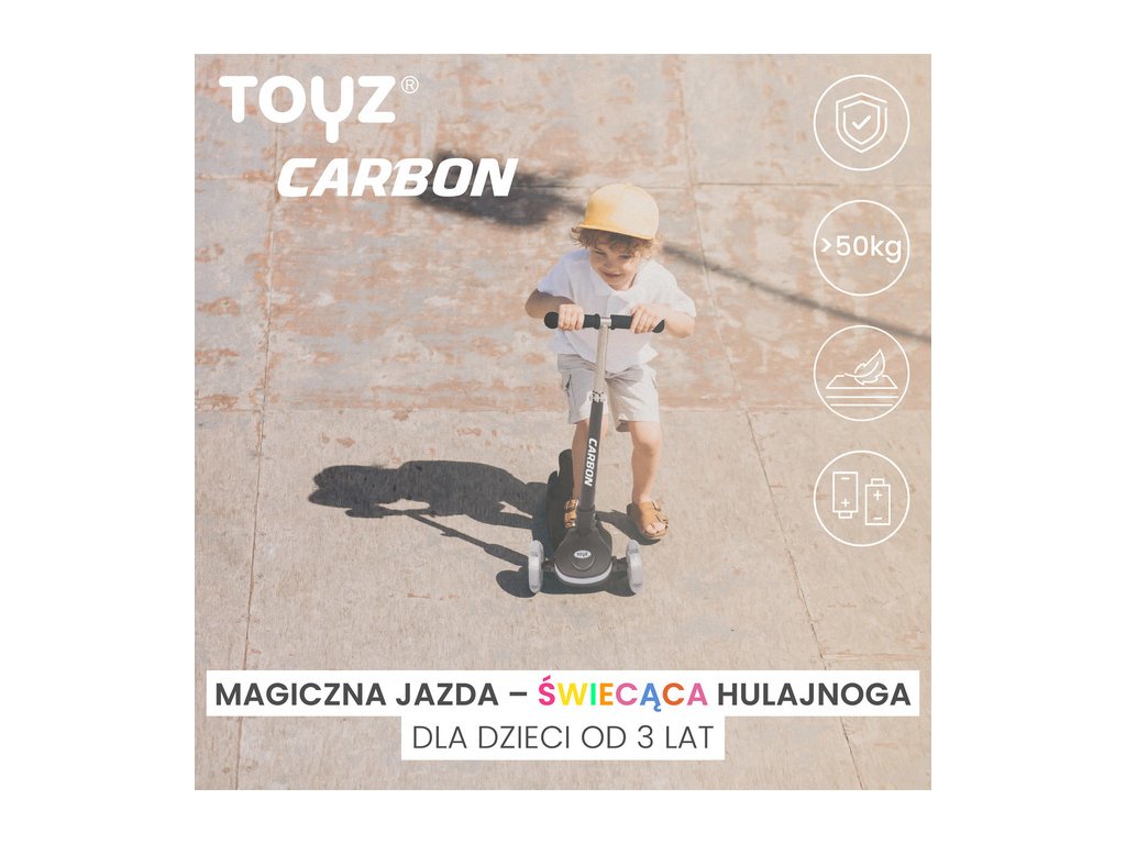 A TOYZ CARBON roller több mint játék – befektetés gyermeke aktív életmódjába. Biztonságot, funkcionalitást és szórakozást egyesít egy elegáns csomagban. A világító hatások örömet szereznek, az állítható kormány biztosítja a hosszú távú használatot, a minőségi konstrukció pedig garantálja a tartósságot. Ajándékozza meg gyermekét a mozgás és a világfelfedezés örömével egy olyan rollerrel, amely vele együtt nő!