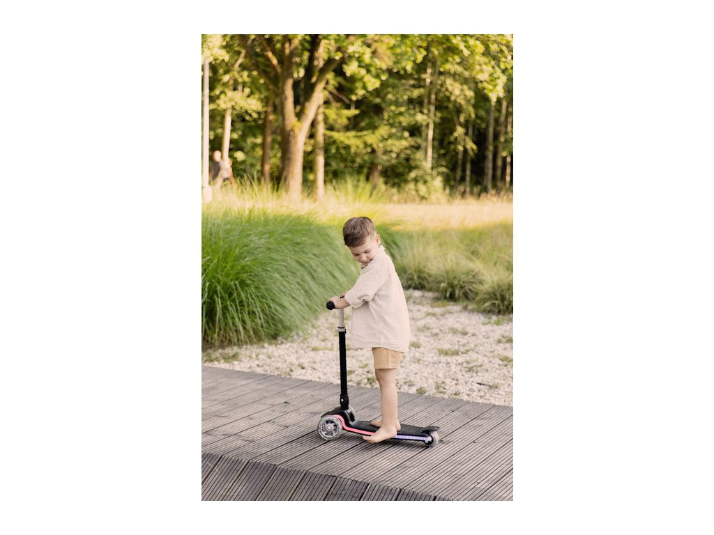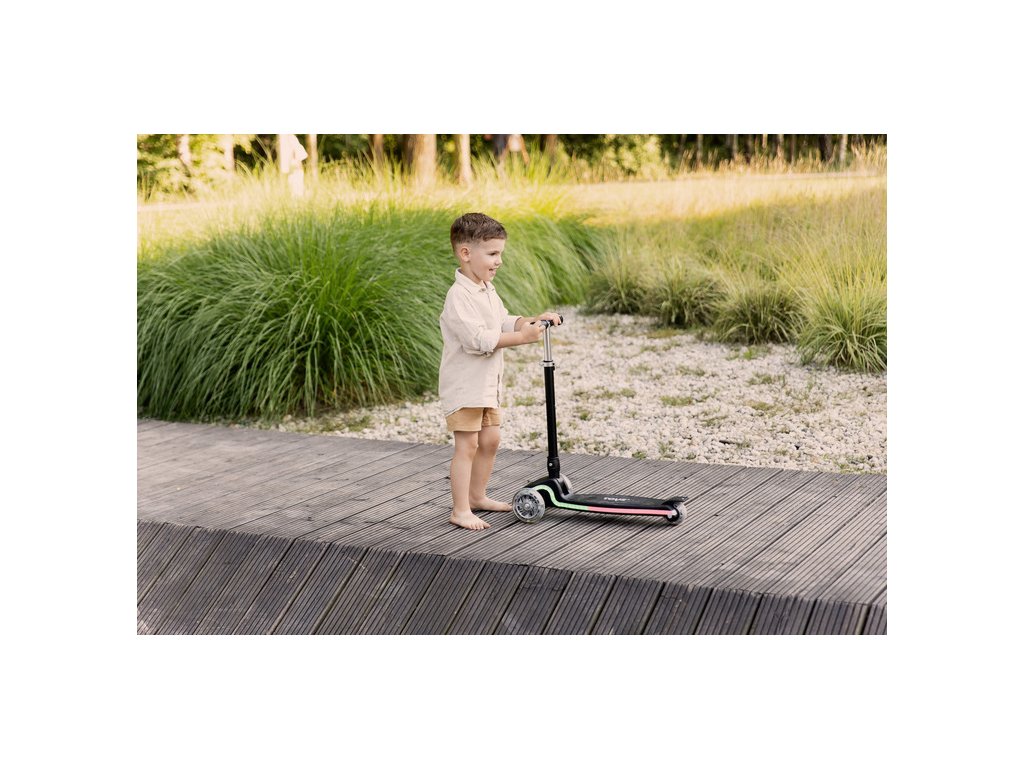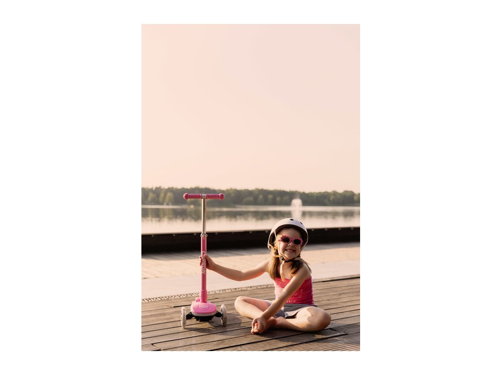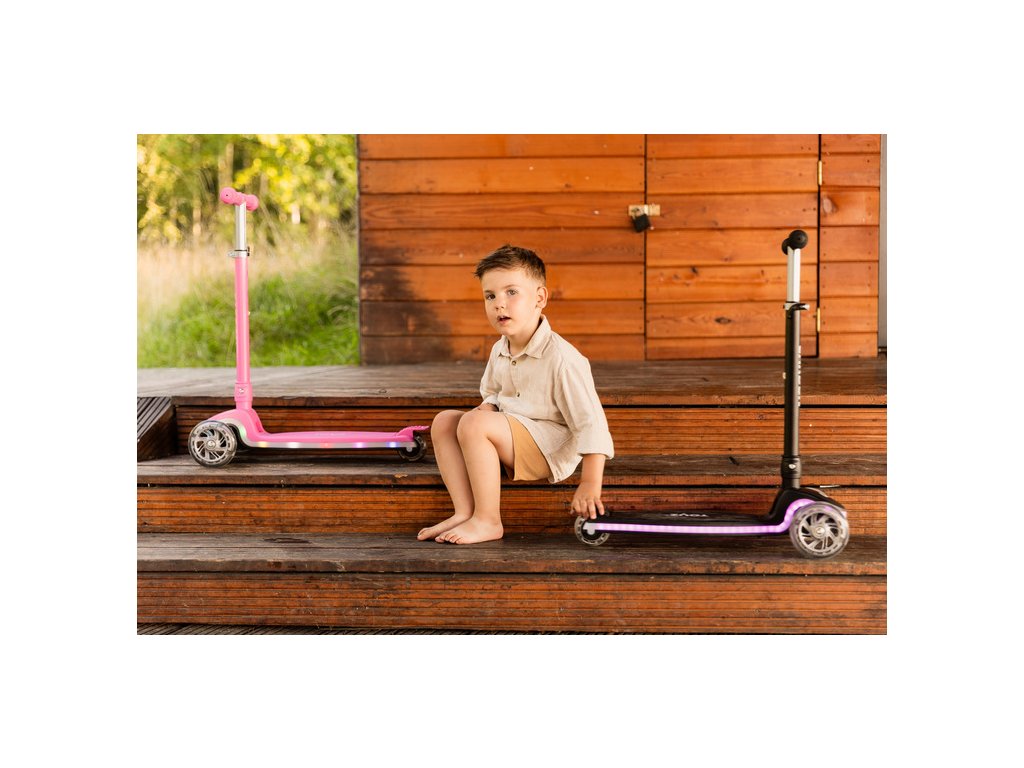 A roller világító kerekekkel van felszerelve, amelyek mozgás közben világítanak és villognak, valamint elemről működő LED szalaggal. Ezek a színes fényhatások minden hétköznapi menetet felejthetetlen élménnyé varázsolnak. A gyerekek el lesznek ragadtatva attól, ahogy a rollerük ragyog és magára vonja a figyelmet. A fényhatások ráadásul növelik a biztonságot azáltal, hogy a gyermek jobban látható, különösen szürkületkor vagy este.