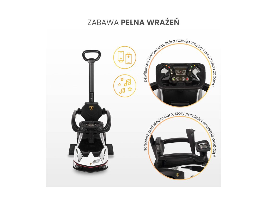 A TOYZ Lamborghini Essenza járássegítő ideális ajándék: • 12 hónapos kortól járni tanuló gyermekeknek