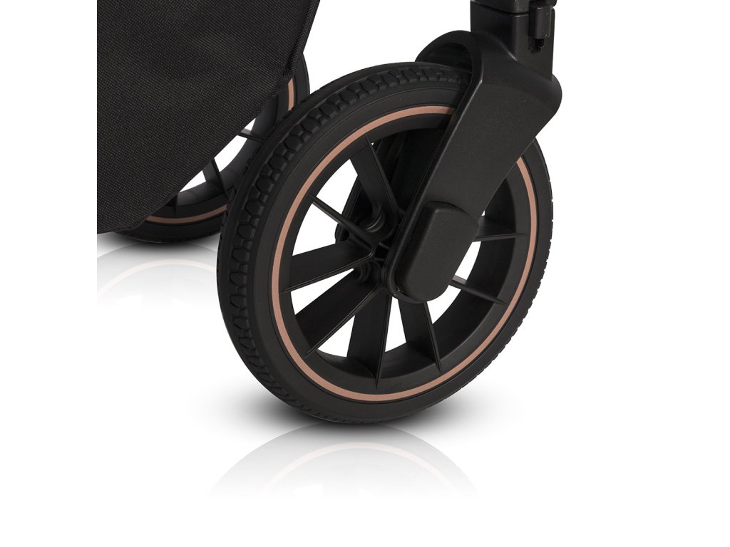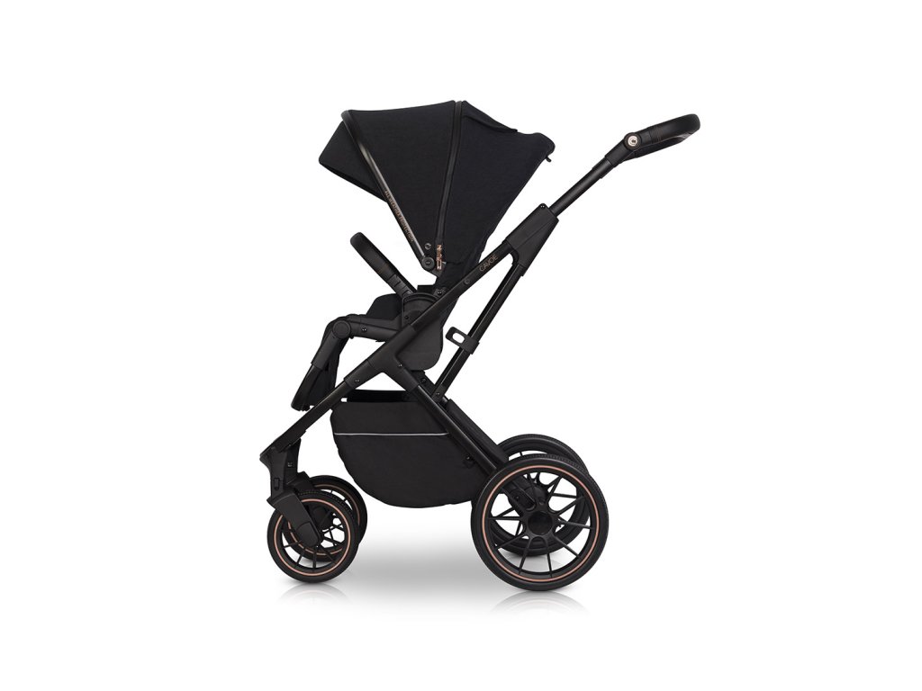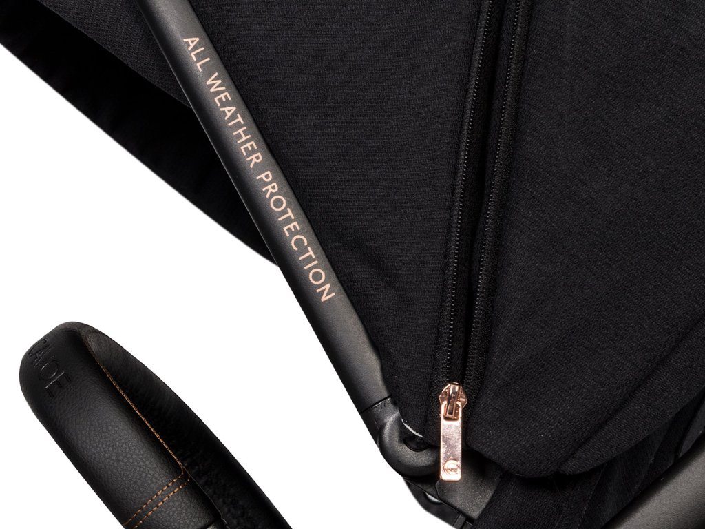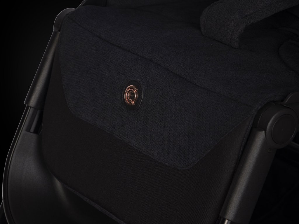 - Elegáns részletekA fogantyún található réz díszítőelemek luxus megjelenést kölcsönöznek a babakocsinak.