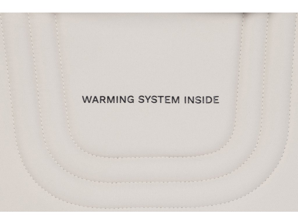 Innovatív fűtési rendszer: A babakocsi zsebekkel van felszerelve, amelyekre USB-ről táplált fűtőpanelek rögzíthetők, így ideálisak a hideg hónapokra. A matracon és az ülésen található speciális zsebek lehetővé teszik a panelek egyszerű beszerelését, amelyek kellemes meleget biztosítanak.
