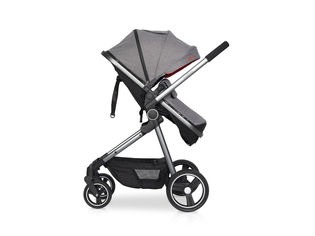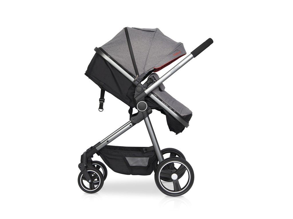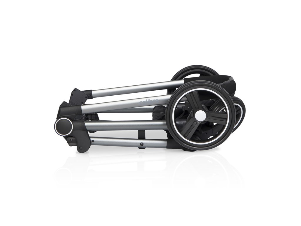 - Kompakt összecsukás: A babakocsi mindkét menetirányban összecsukható, akár a mózeskosárral vagy az üléssel együtt is.
