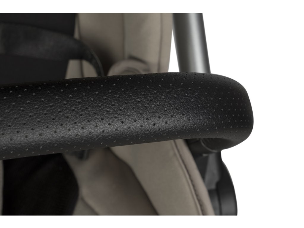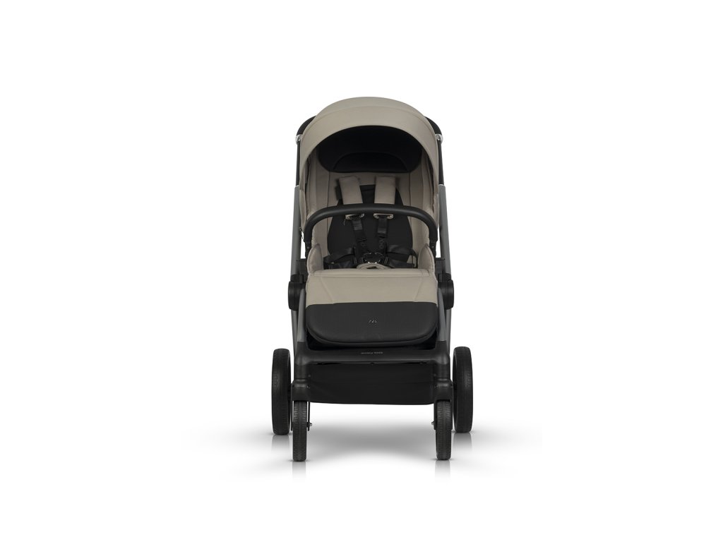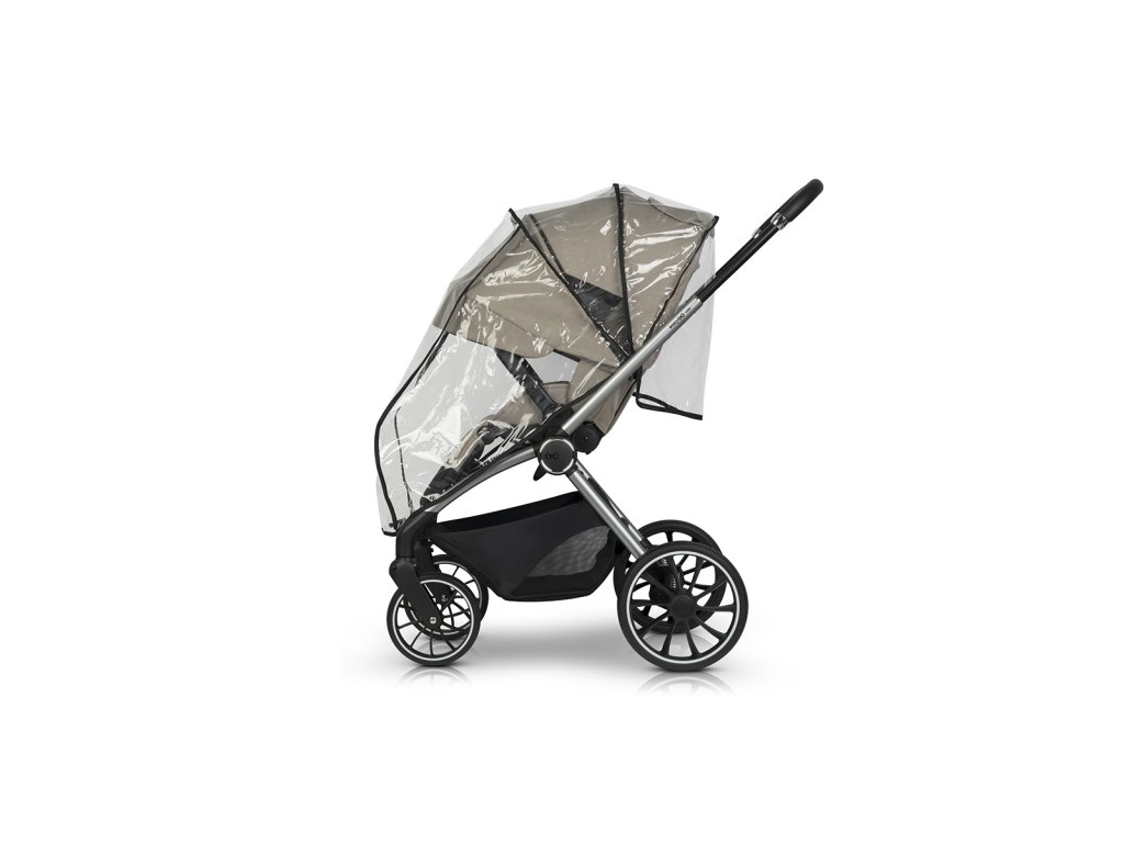 - Tartósság és stílus: A babakocsi modern, szennyeződésálló és könnyen karbantartható anyagból készült.