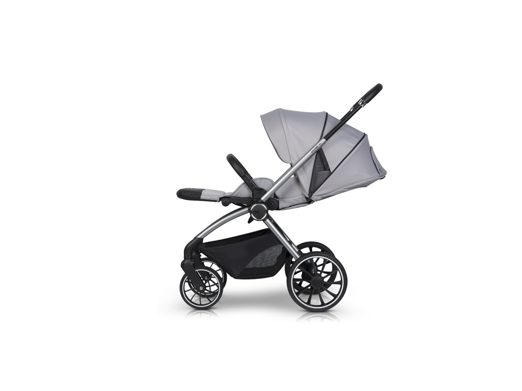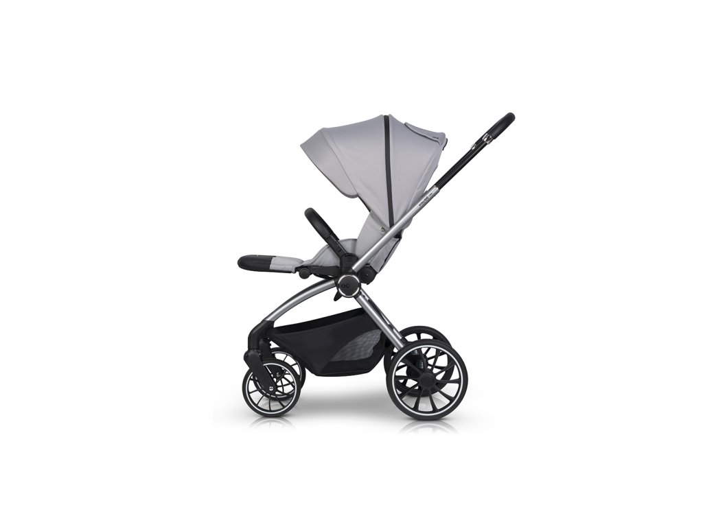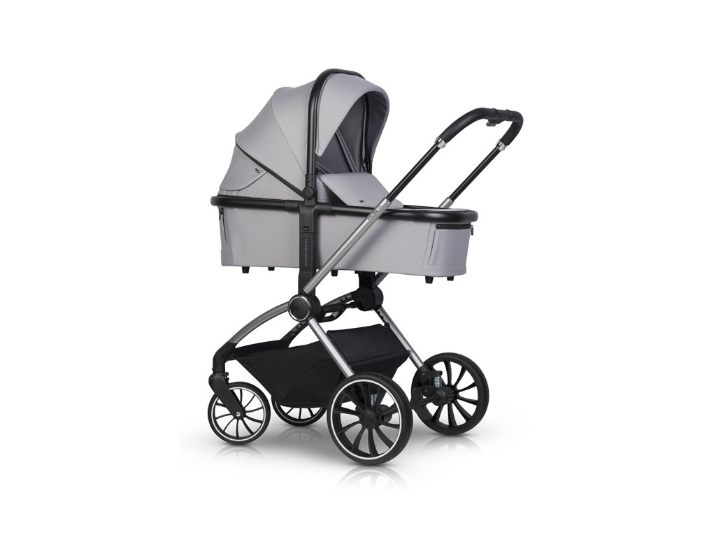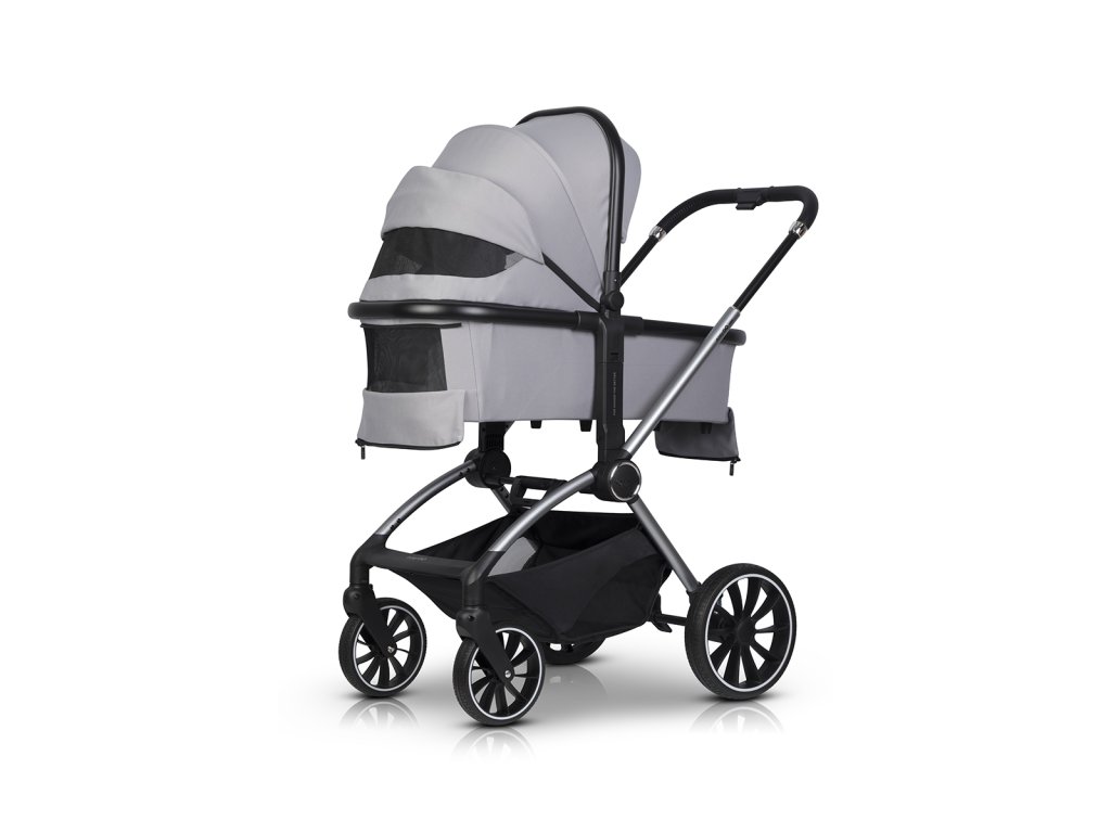 - Változtathatóság és rugalmasság: A babakocsi 2 az 1-ben szettben kapható, amely egy tágas mózeskosarat és egy kényelmes ülést tartalmaz, ideális születéstől 22 kg-os (kb. 4 éves) gyermekek számára.