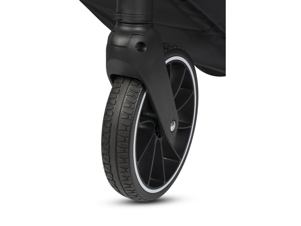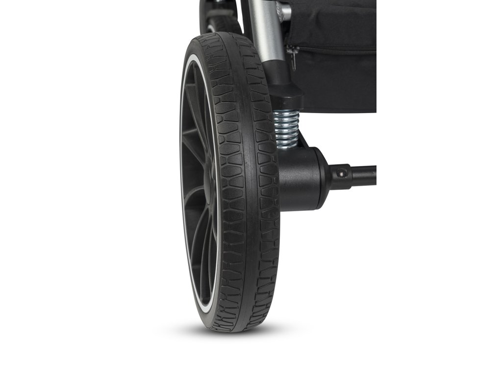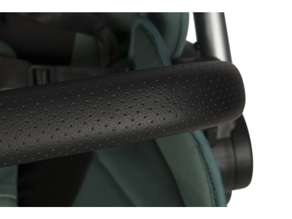 - Tartósság és stílus: A babakocsi modern, szennyeződésálló és könnyen karbantartható anyagból készült.