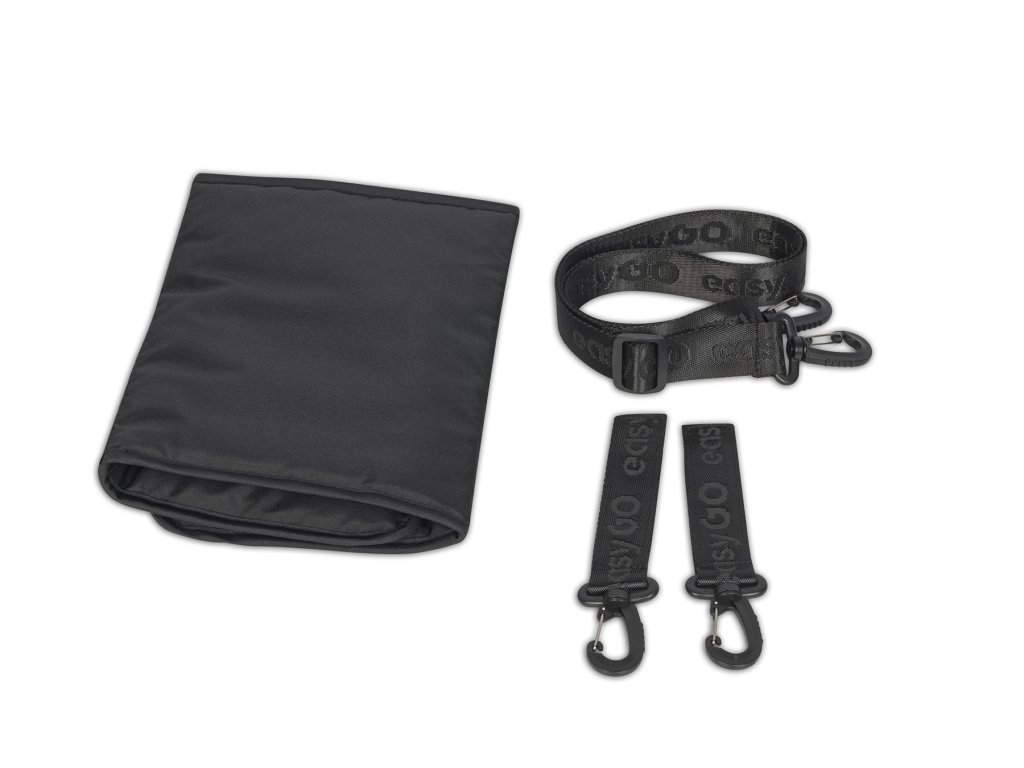 - Praktikus kiegészítők: A csomag tartalmaz egy stílusos táskát, amely a fogantyúhoz is rögzíthető, egy lábvédőt hideg napokra és egy esőkabátot.