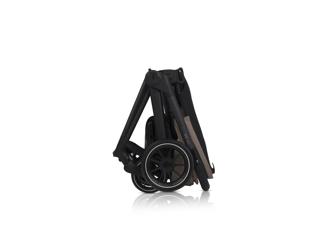 - Könnyen összecsukhatóA babakocsi egy kézzel összecsukható, akár mindkét irányban fordított üléssel is. Összecsukva függőlegesen áll, és praktikus fogantyúval van felszerelve a könnyű hordozás érdekében.