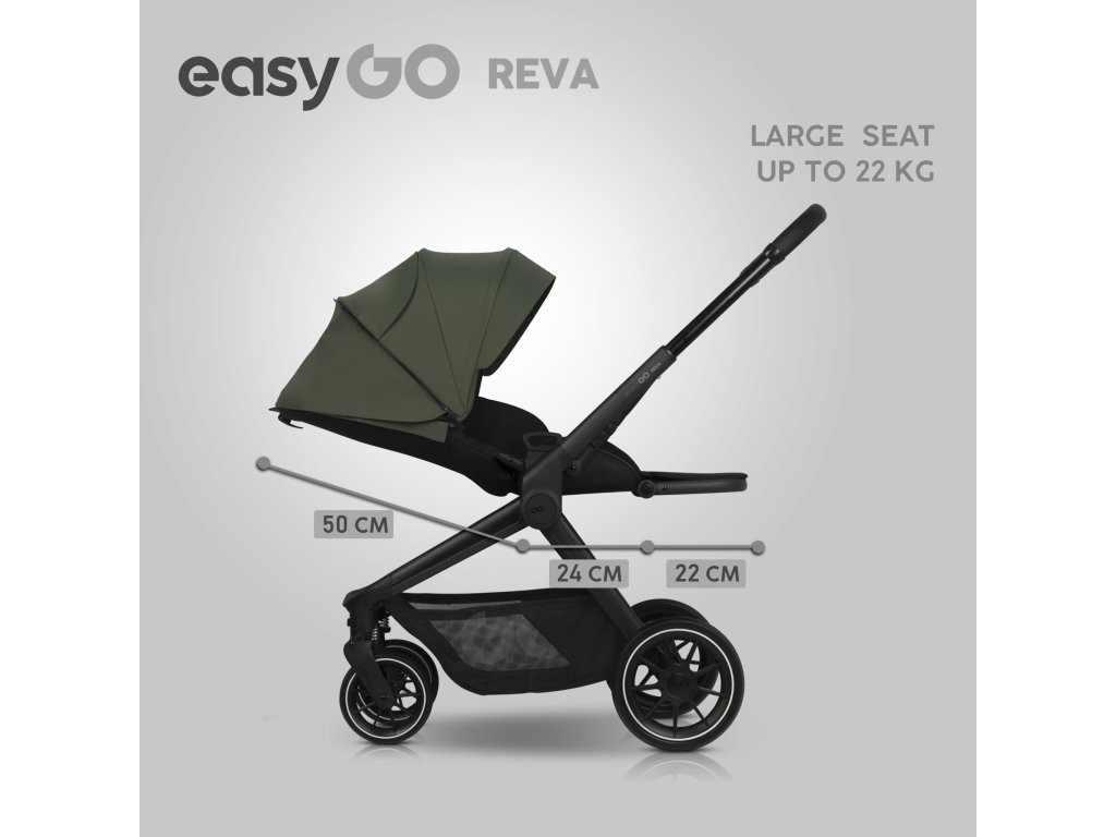 Az EasyGo Reva 2 az 1-ben kombinált babakocsi tökéletes választás azoknak a szülőknek, akik modern, funkcionális és stílusos megoldást keresnek gyermekük számára születéstől 22 kg-ig, vagy legfeljebb 4 éves korig. Kivételesen megfizethető áron ez a babakocsi minden szükséges funkciót és tulajdonságot kínál, amit a szülők elvárnak egy babakocsitól, a dizájn vagy a minőség feláldozása nélkül.
