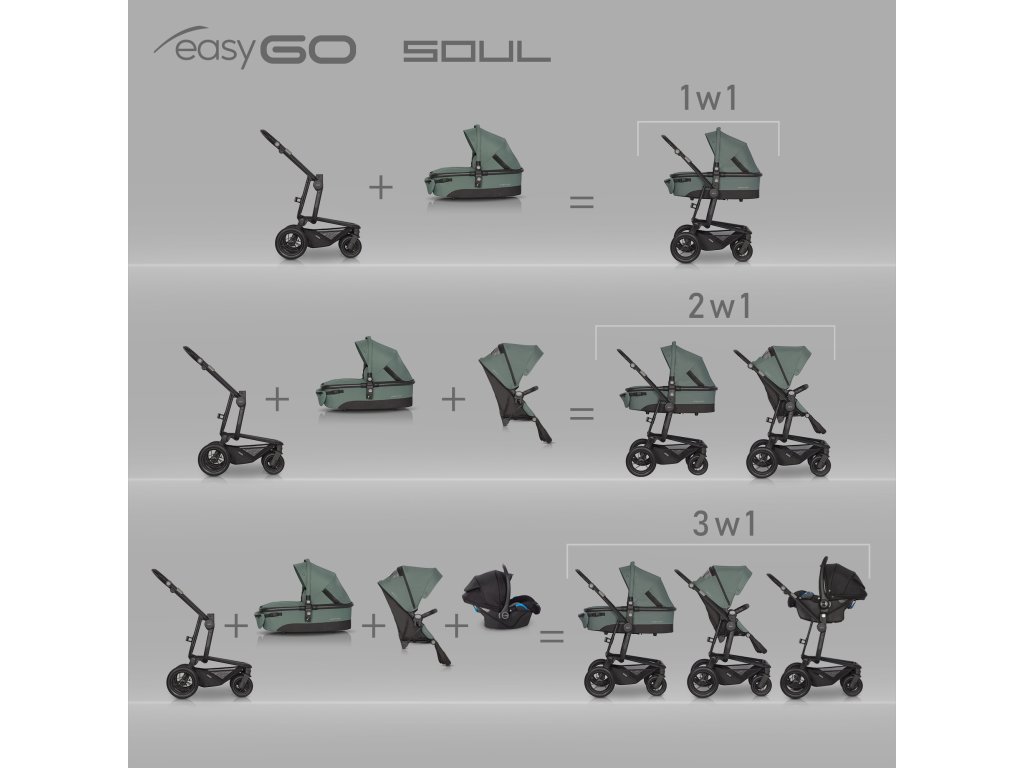 Az EasyGo Soul 1in1 több mint egy egyszerű babakocsi. Okos, rugalmas és gazdaságos megoldás, amely megkönnyíti az első lépéseket a szülőség felé.