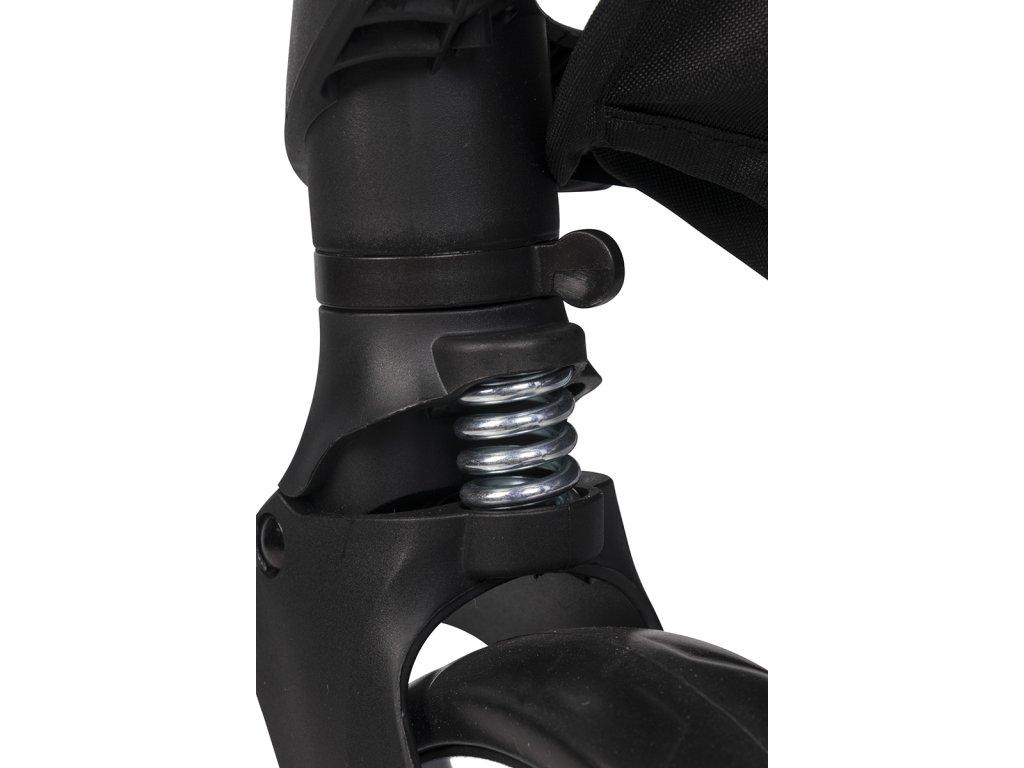 - Biztonság: 5 pontos biztonsági övek központi csattal, könnyen használható fékrendszerrel, forgó első kerekekkel és rögzíthető rögzítési lehetőséggel.