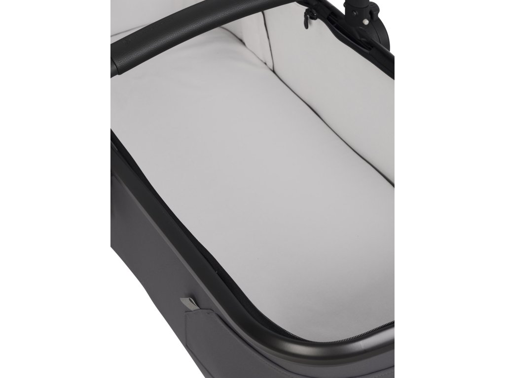 A gondola belseje ebből készült kényelmes pamut világos szürke színbenamely gyengéd az újszülött bőréhez. Puha matrac megfelelő támaszt nyújt a baba hátának és fejének, ami kulcsfontosságú az egészséges fejlődéshez az élet első hónapjaiban. A pamut anyag: