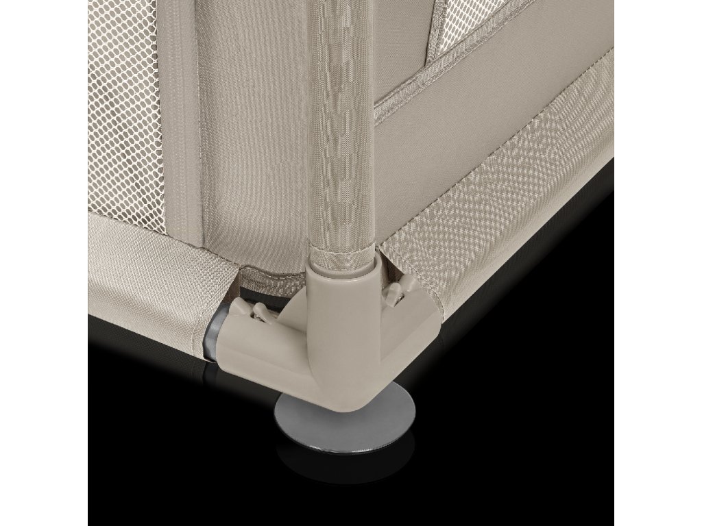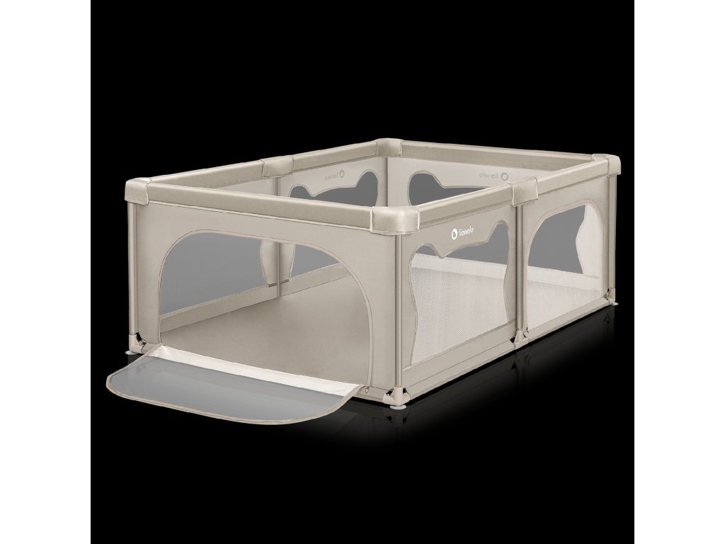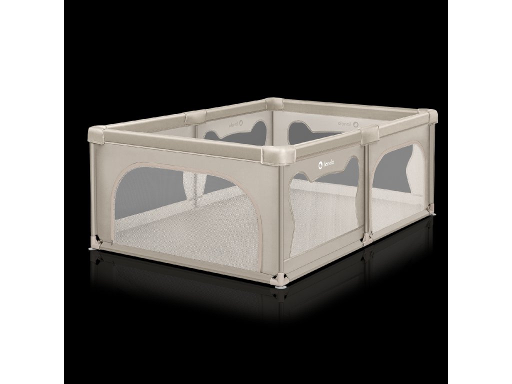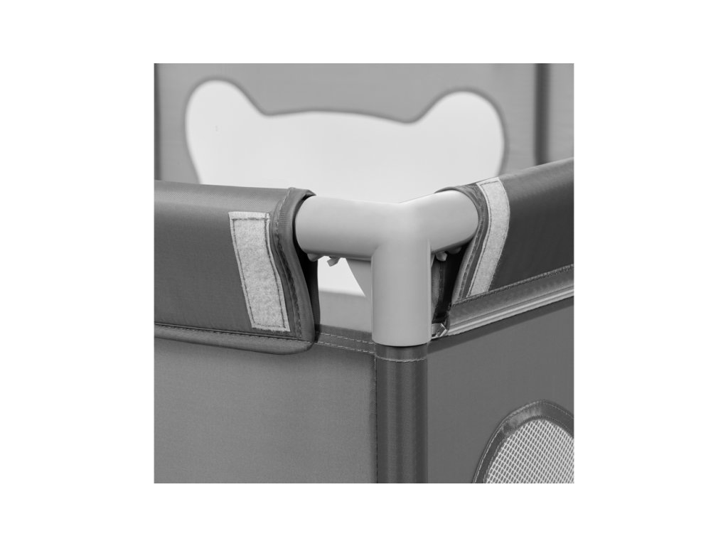 A járóka magas oldalai hálóból készültek, ami nem csak a levegő keringését, hanem a jó láthatóságot is garantálja, így a szülő figyelemmel kísérheti, mi történik a gyerekkel. A puha oldalfalak minimalizálják az esetleges ütközések kockázatát, a medvefül mintázat pedig arra ösztönzi a gyerekeket, hogy önállóan játsszanak a járókában.