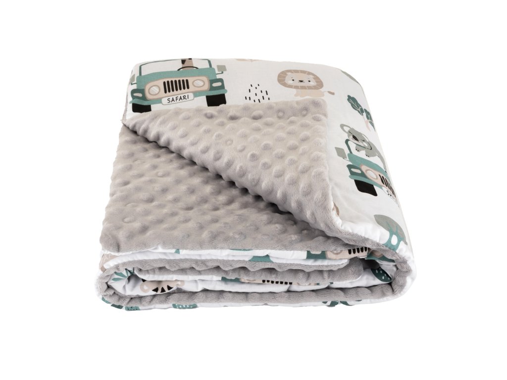 Gyermek luxus kétoldalas takaró egyik oldala 100% pamutból, a másik puha, meleg és luxus MINKY anyagból. A puha takarót antiallergén poliészter szál tölti ki a nagyobb kényelem érdekében.