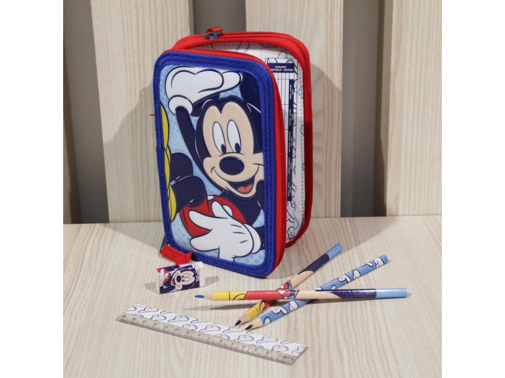 Háromszintes iskolai tolltartó Miki egér 3D töltettel