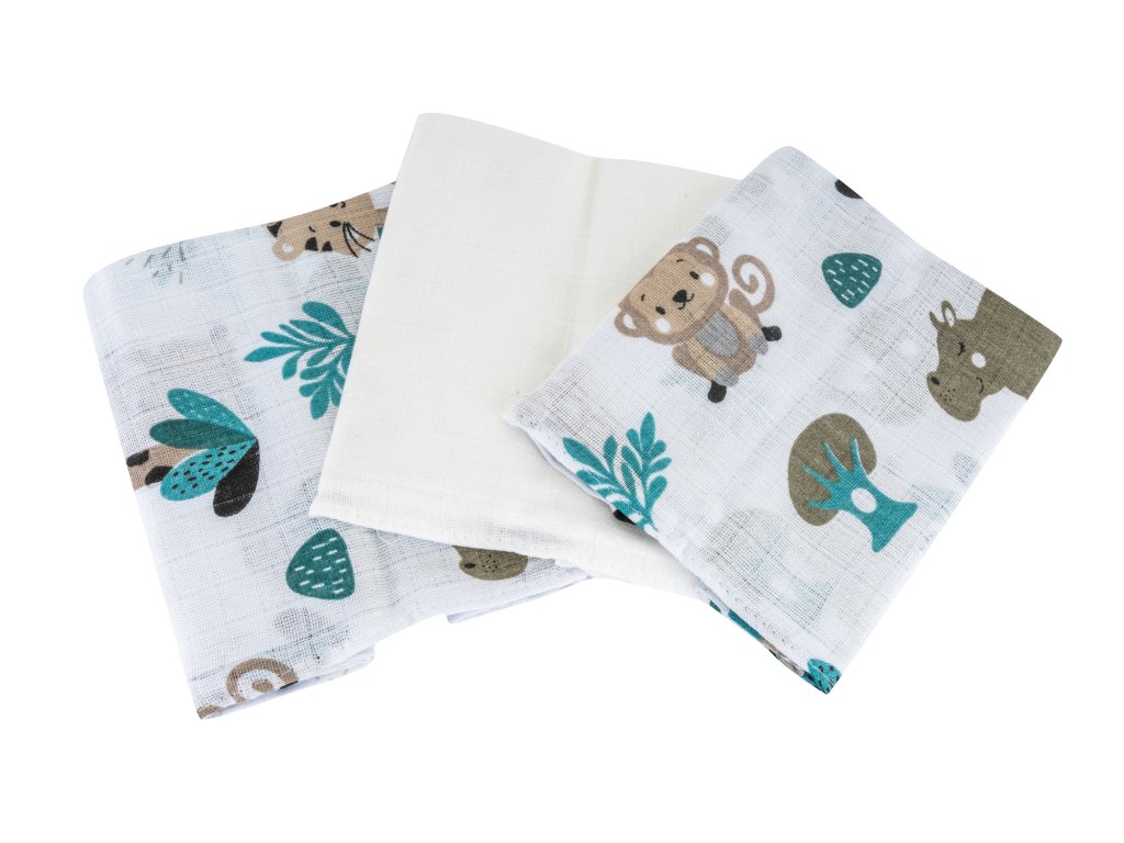 Bomimi Premium pamut pelenkák 140 g/m2 nyomat, 80x70, 3 db, MOBILÁLLAT