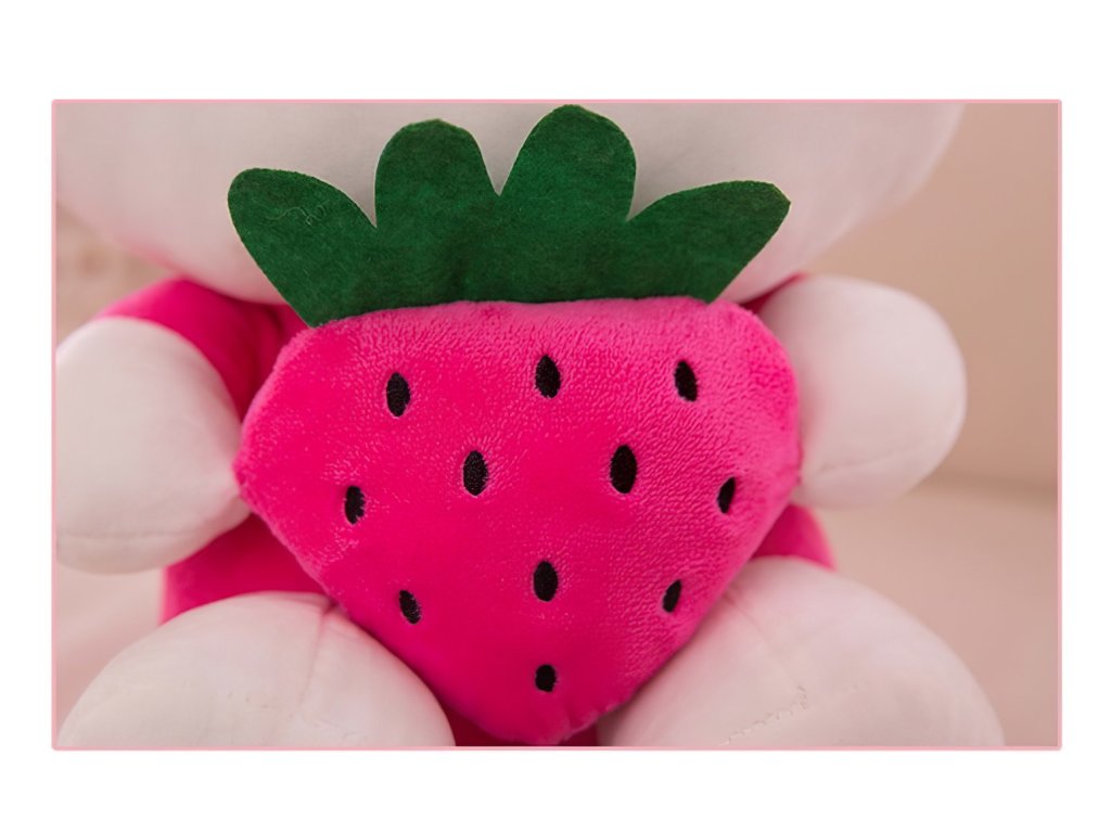 A játék nagyon puha és kellemes tapintású anyagból készült. plüss, amely a legkisebb gyermekek számára is biztonságos. A töltelék puha, ugyanakkor kellően szilárd ahhoz, hogy a játék még gyakori rázás esetén is megtartsa formáját. Részletek, például szemek, pofaszakáll vagy magvak eper Kiváló minőségű hímzettek, ami hosszabb tartósságot és biztonságot garantál játék közben.