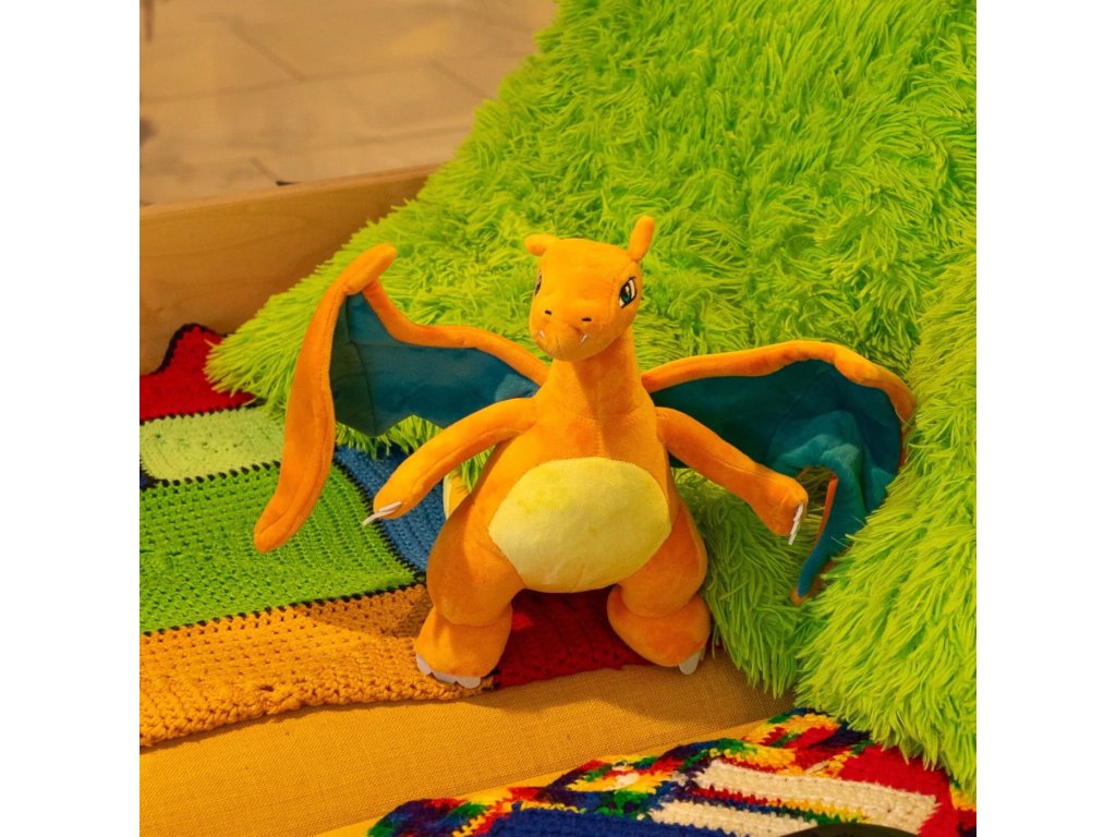 Az ideális méret lehetővé teszi könnyű ölelés és játék, míg puha, minőségi anyagból garantálja a biztonságot és a hosszú élettartamot. Charizard ben készült színes, kifejező színek, amelyek hűen utánozzák megjelenését a sorozatból. Tipikus narancssárga és sárga szín autentikus dizájnnal kombinálva ideális kiegészítőjévé teszik bármely kollekciónak.
