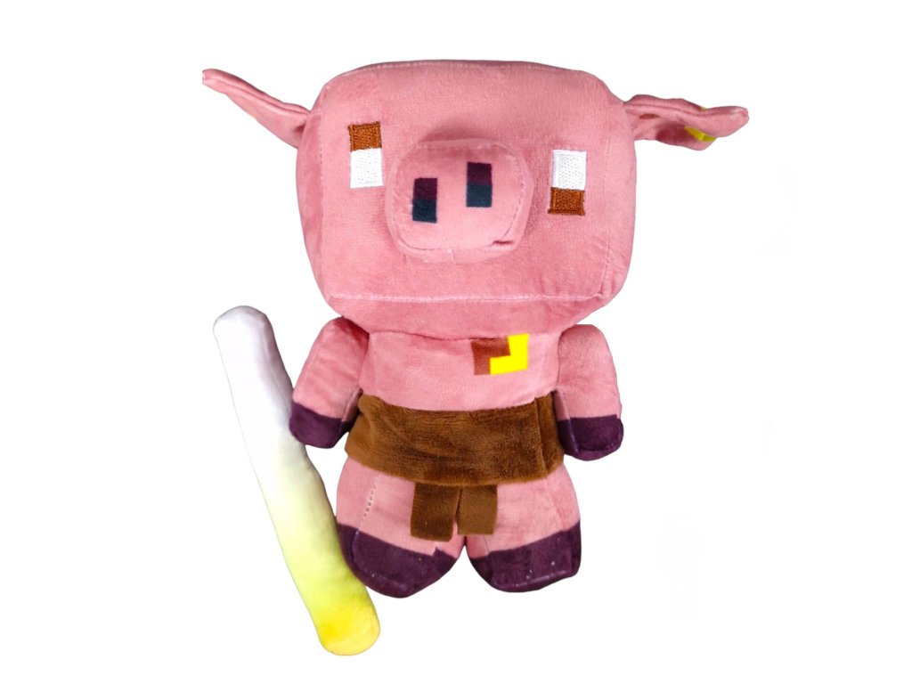 V Minecraft PigliniGyakran támadnak olyan játékosokat, akik nem viselnek aranypáncélt, de ez a plüss változat inkább egy barátságos társnak tűnik.