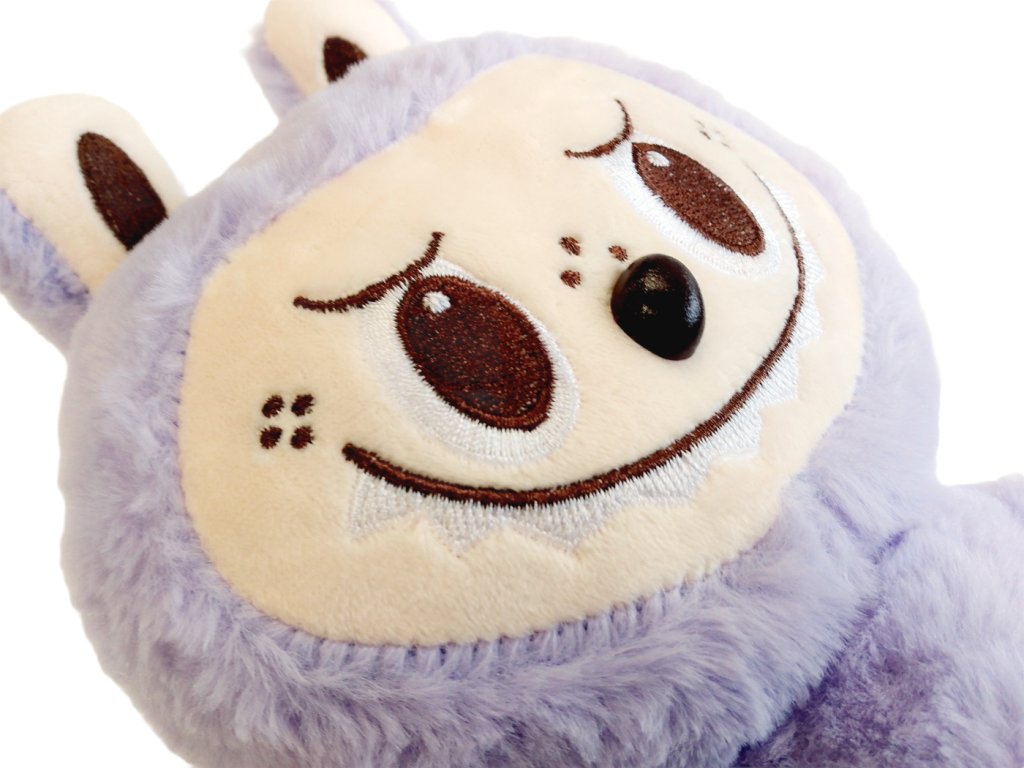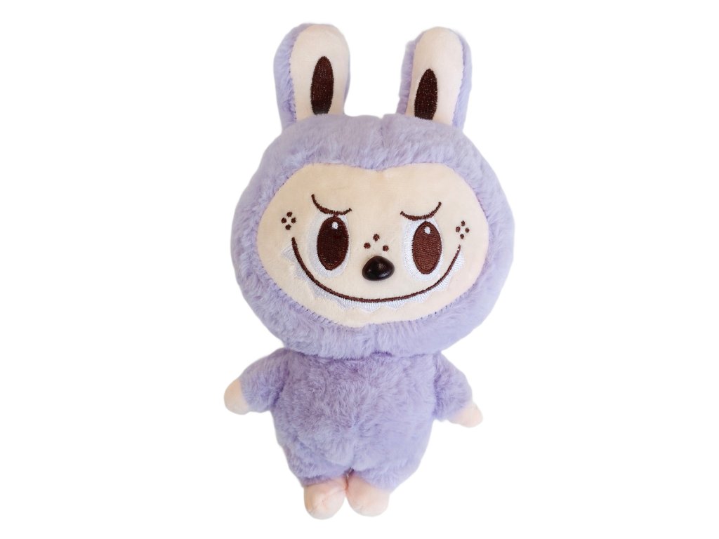 Labubu stílusú plüssjáték be lila színegyedi kombinációt hozravaszság a baj.
