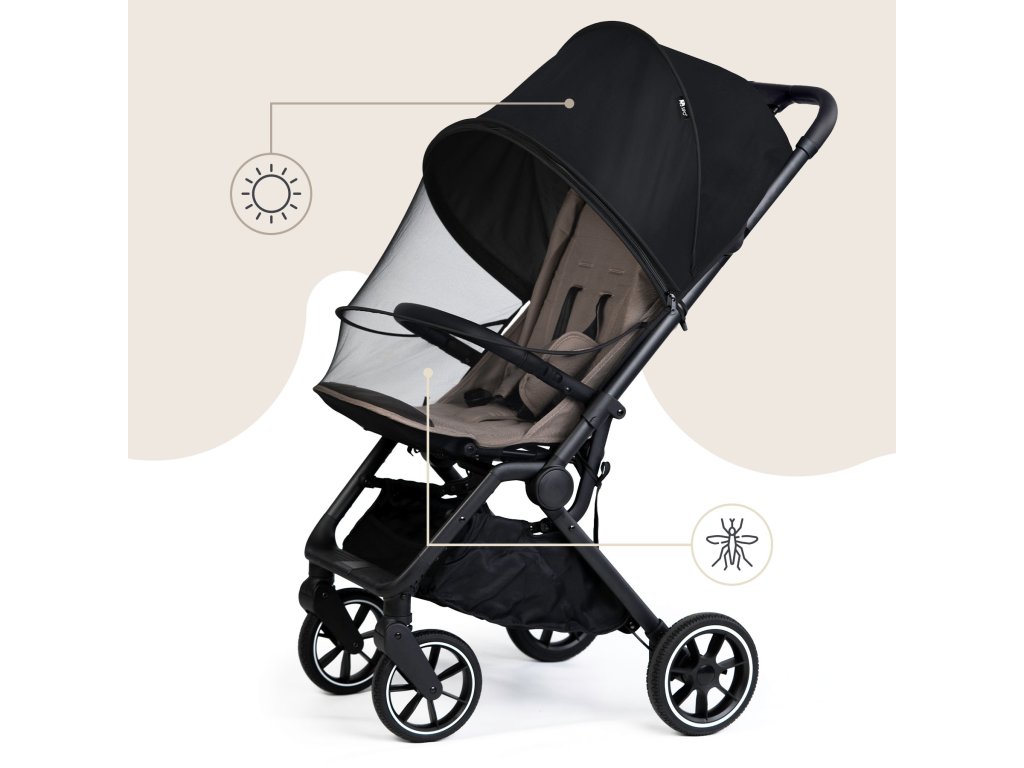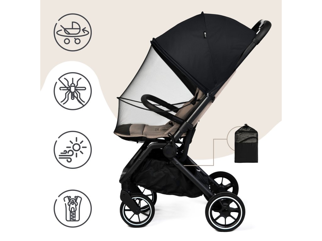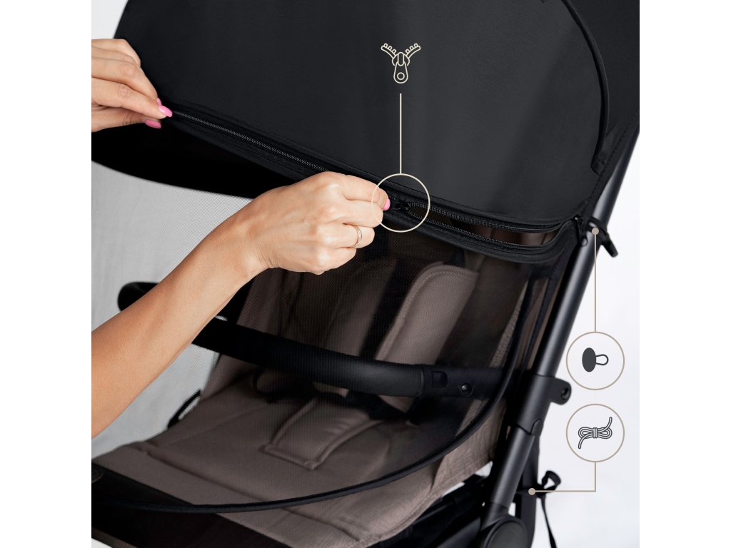 Ez a csecsemők és kisgyermekek számára készült rovar- és napvédő két különálló cipzárral rendelkezik, amelyek lehetővé teszik a gyermek gyors hozzáférését anélkül, hogy a teljes terméket le kellene venni. Univerzális kialakításának és kettős telepítési módjának köszönhetően könnyen alkalmazkodik a változó időjáráshoz és a nap állásához.