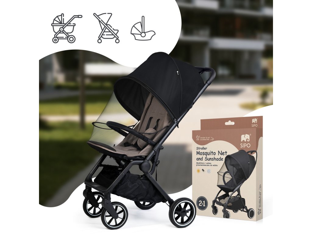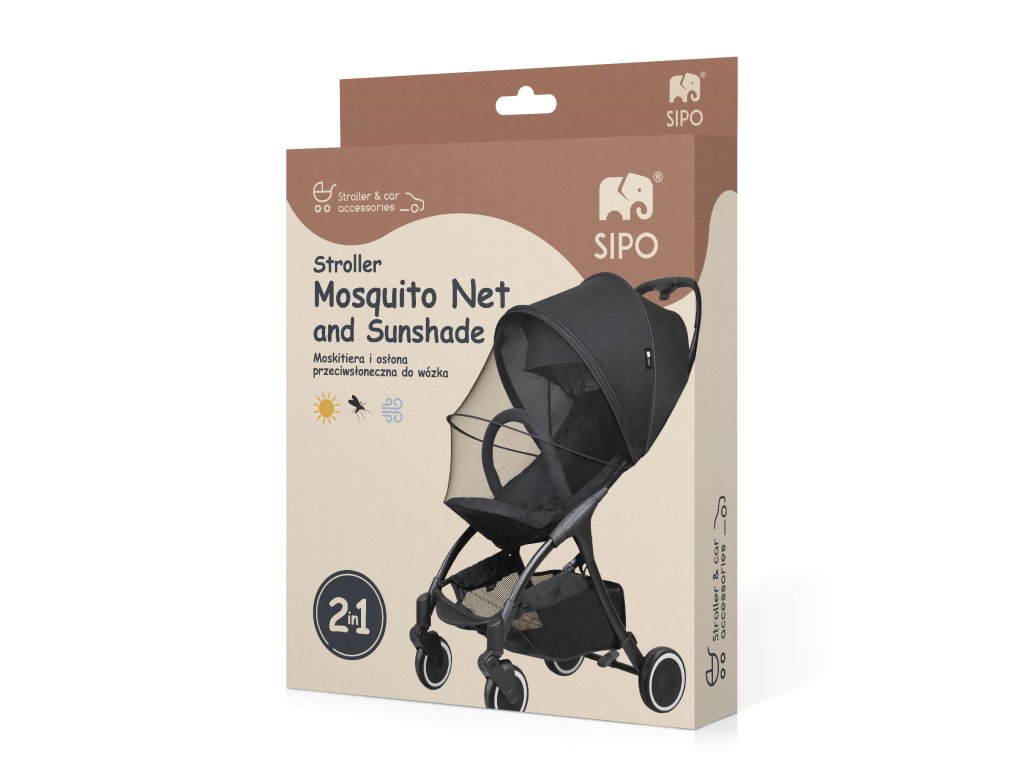 A SIPO szúnyogháló beépített napvédelemmel egy multifunkcionális gyermekkiegészítő, amelyet a kényelem és a biztonság szem előtt tartásával terveztek. Ideális univerzális védelem a rovarok és a nap ellen babakocsiba a nyugodt nyári sétákhoz és a szabadtéri kikapcsolódáshoz. Könnyű poliészter hálóból és szövethuzatból készült, így hatékonyan véd a káros UV-sugárzás, a csípős rovarok és a kellemetlen széllökések ellen.