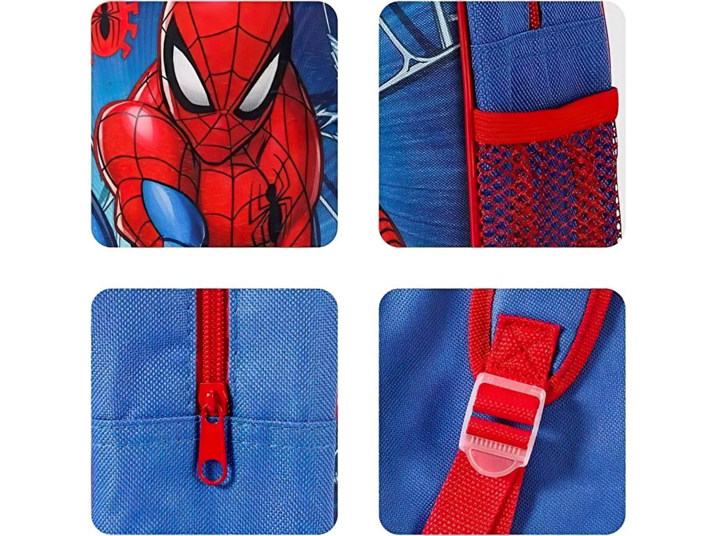 A párnázott és állítható vállpántok maximális kényelmet biztosítanak. A pántok és a cipzár kontrasztos piros elemei illeszkednek a hátizsák általános kialakításához, tovább kiemelve Pókember stílusát. A hátizsák hátulja megerősített a jobb stabilitás és kényelem érdekében. A felső hurok praktikus hordáshoz vagy akasztáshoz.