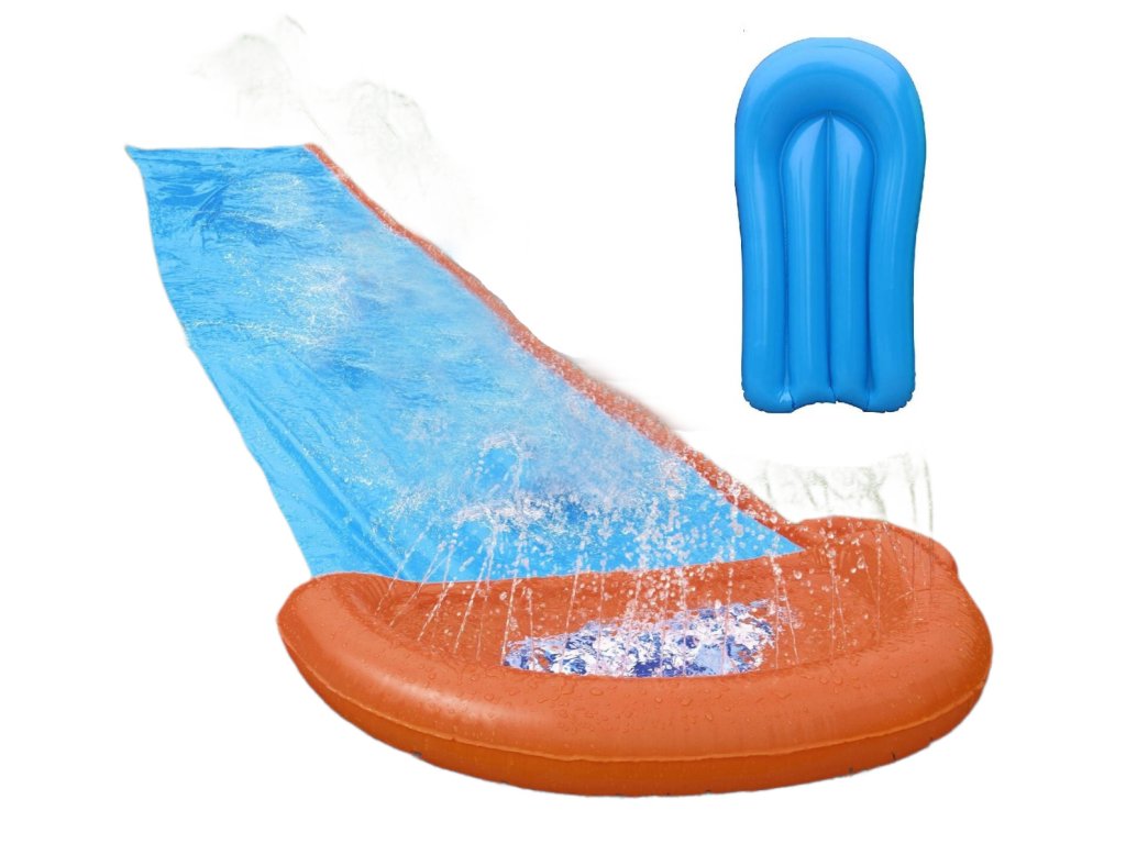 Hosszú csúszda kombinációja ésszéles leszállómedence. Van egy csúszda kiváló minőségű és tartós anyagból készültgarantálja a biztonságot és a hosszú élettartamot.Egy kék edény is tartozik hozzá, ami növeli a vezetés élvezetét ésextra adag adrenalint szállít. Az edény jellegzetes kék színe kombinálvaa dia élénk színei már első pillantásra megragadja a tekintetet, és látványosan vonzó.A csúszda felszerelése nagyon egyszerű és nem kell sok idő. Ideális használatrakertben vagy nyaralóban. Nemcsakfrissítő a forró nyári napokon, hanem végtelen szórakozási órákat garantál kicsiknek és nagyoknak.