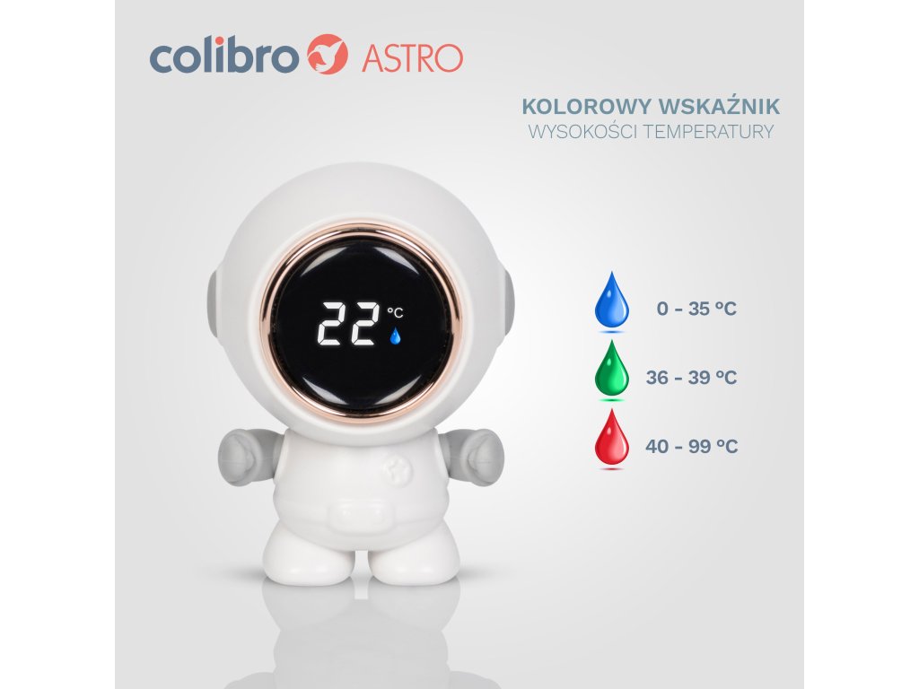 Colibro Astro fürdőhőmérő egy innovatív megoldás minden szülő számára, aki biztos akar lenni abban, hogy gyermeke fürdetése biztonságos és kényelmes hőmérsékletű. Nincs többé szükség a víz hőmérsékletének mérésére a könyökkel - az Astra segítségével egyetlen érintéssel pontos mérést végezhet!