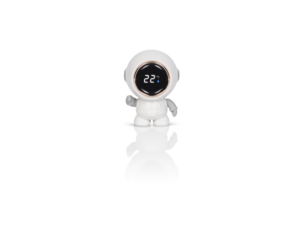Ezt multifunkcionális hőmérő Egy aranyos űrhajós formájában három funkciót egyesít:
