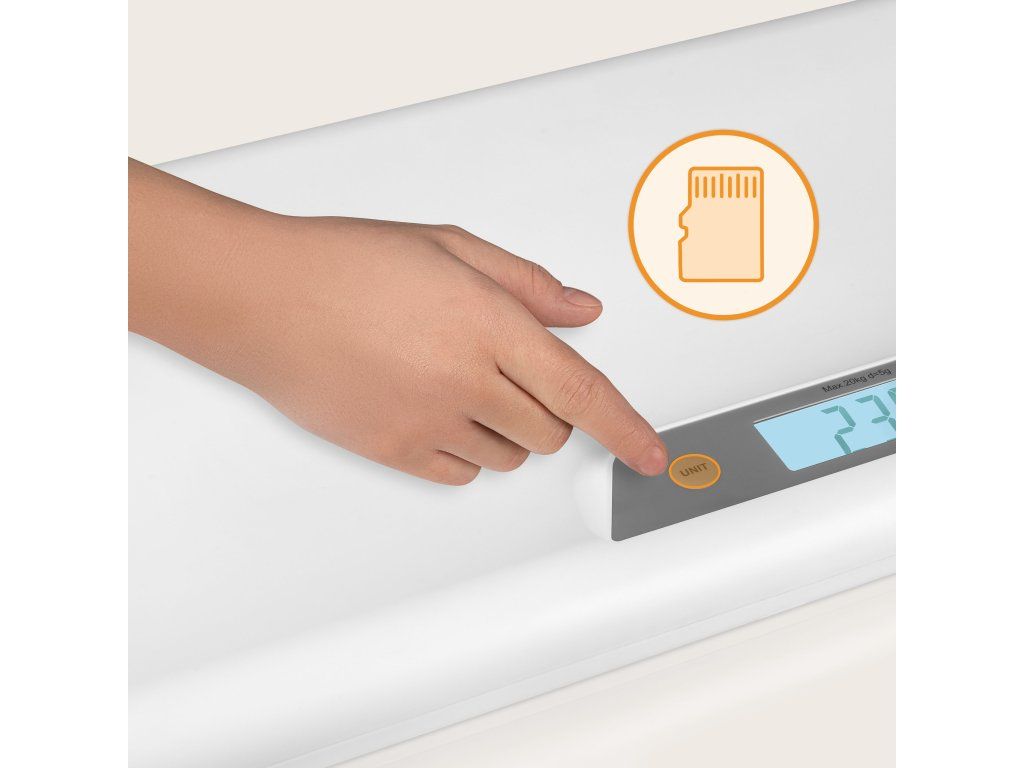 A baba fejlődésének nyomon követése még kényelmesebbé tétele érdekében a mérleg megjegyzi az utolsó mérést, és minden bekapcsoláskor megjeleníti azt. Így könnyen összehasonlíthatja az aktuális eredményt az előző méréssel, és azonnal áttekintést kaphat arról, hogyan növekszik a baba.