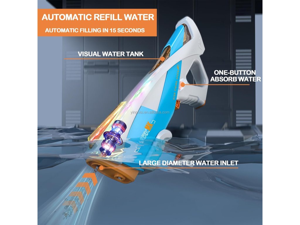 Ez a modell gyerekeknek és tinédzsereknek készült, akik a következőket keresik: erős vízipisztoly val velmodern megjelenés a egyszerű működés. Jacht világító vízipisztoly hoz szórakozás, sebesség és stílus minden nyári csatába.