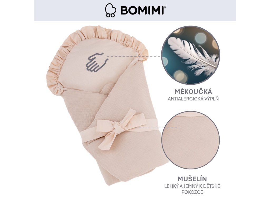 A gyors pakolás kellemes muszlinból készült, mely könnyű és gyengéd a baba bőréhez.